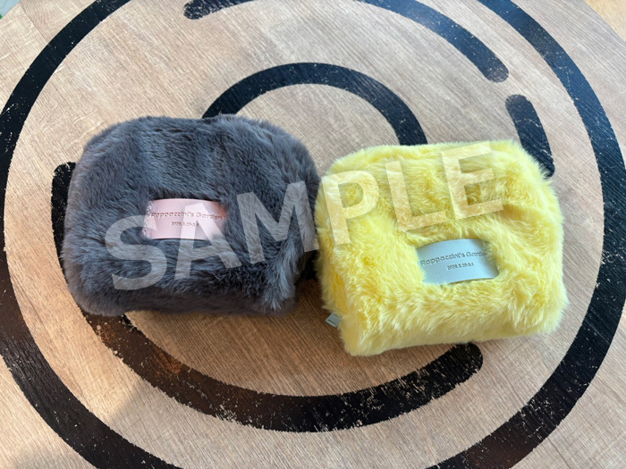 ラパチーニの園のロゴ入りスペシャルファーポーチ。まだまだ寒いこの時期もこのポーチでほかほか暖かい気持ちになること間違いなし!タグとファスナーの色にもこだわった二色展開です。